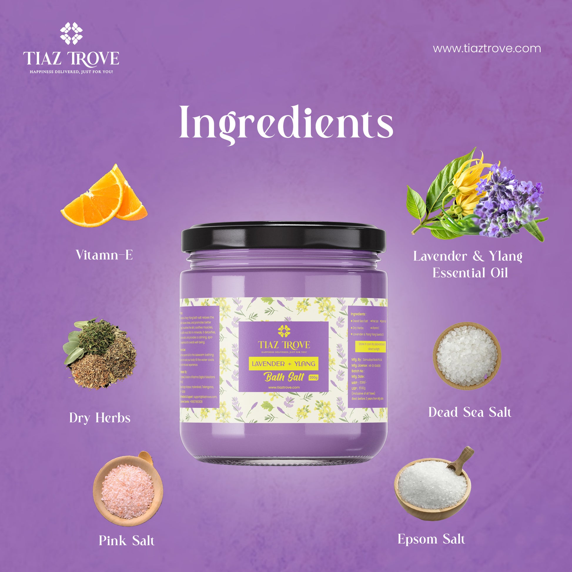 Handmade Lavender & Ylang Bath Salt | Calming Aromatherapy | Stress Relief & Skin Nourishment | TiazTrove